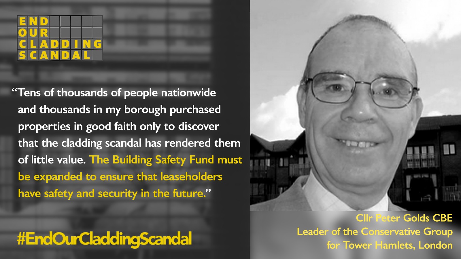 Cllr. Peter Golds CBE, Leader of the Conservative Group for Tower Hamlets council, has been at the forefront of the campaign to expand the Building Safety Fund so that leaseholders will know they will have a safe and secure home in the future.