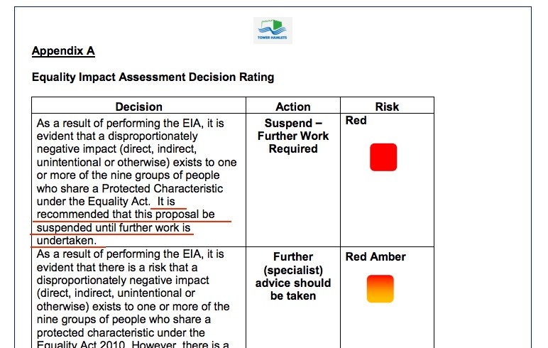 Council’s proposals, Appendix A which covers the Equality Impact Assessment Decision Rating. An EIA a process designed to ensure that a policy, project or scheme does not unlawfully discriminate against any groups like, ooh, users of a Day Centre?